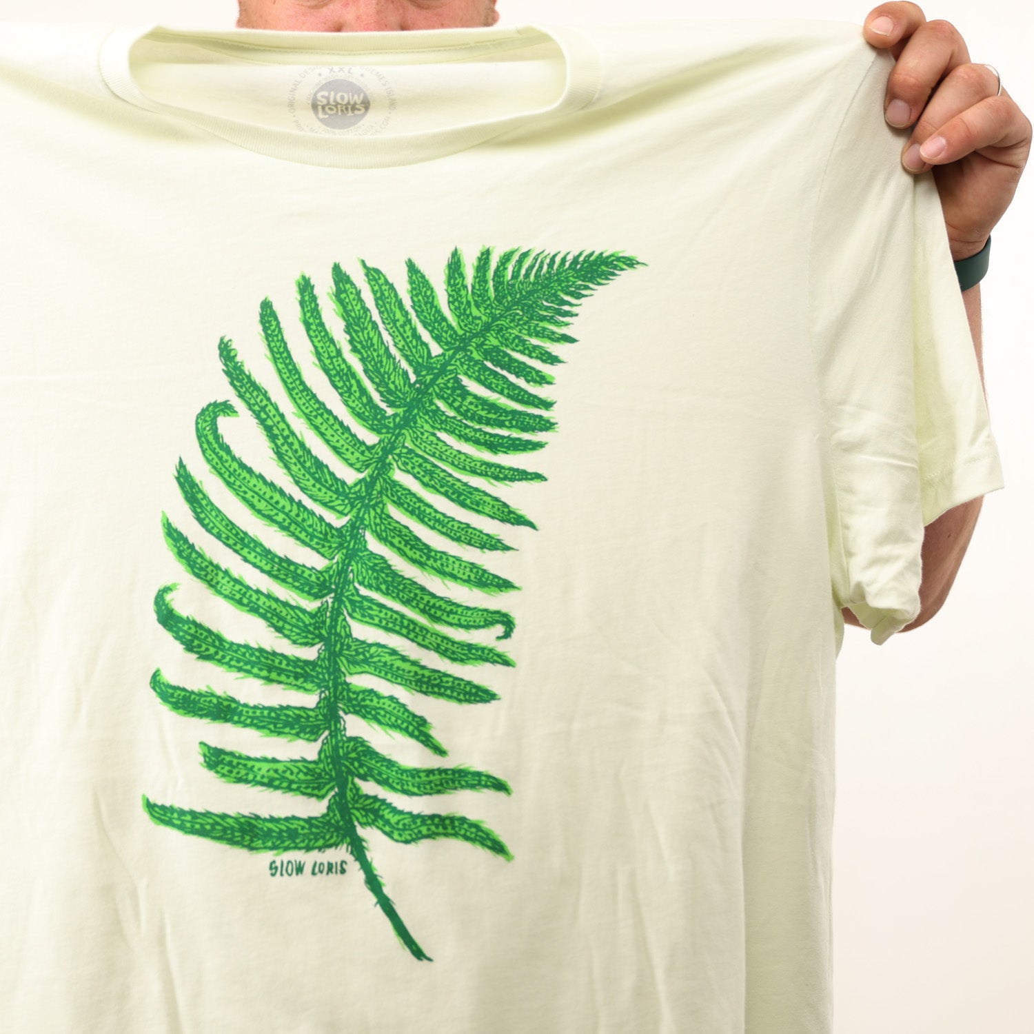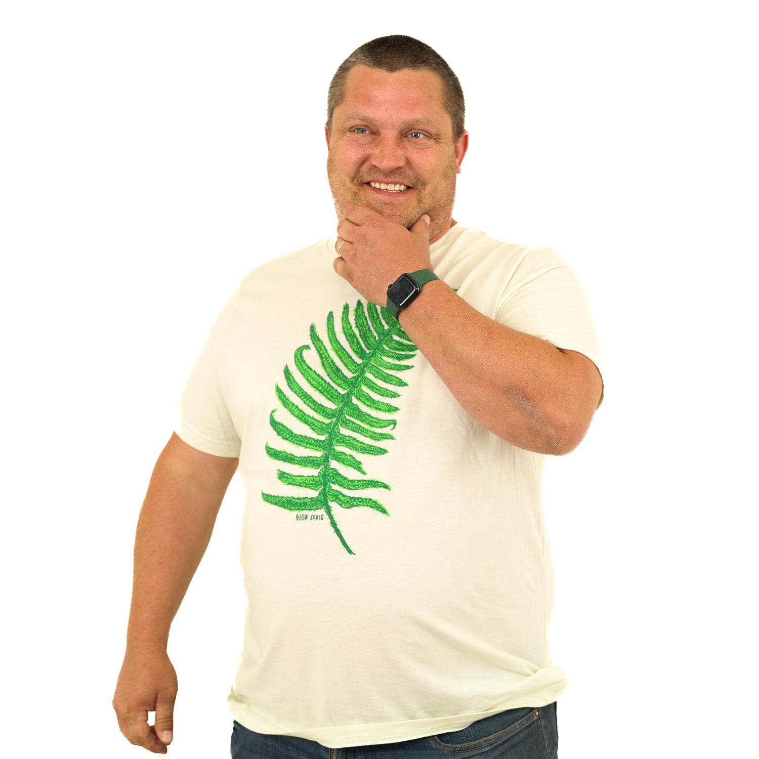 100% Cotton tee with 2 color Fern print in Sage Green or Citron white.