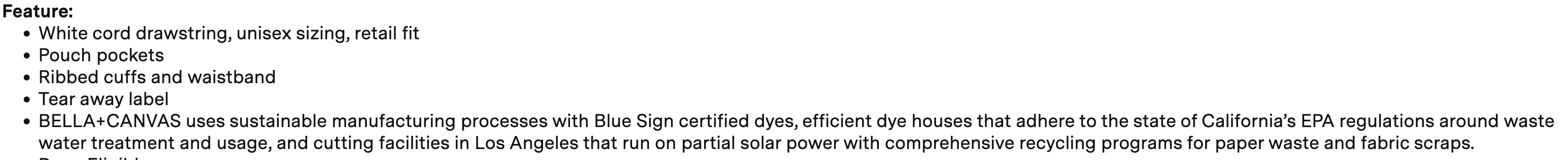 - White cord drawstring; unisex sizing; retail fit