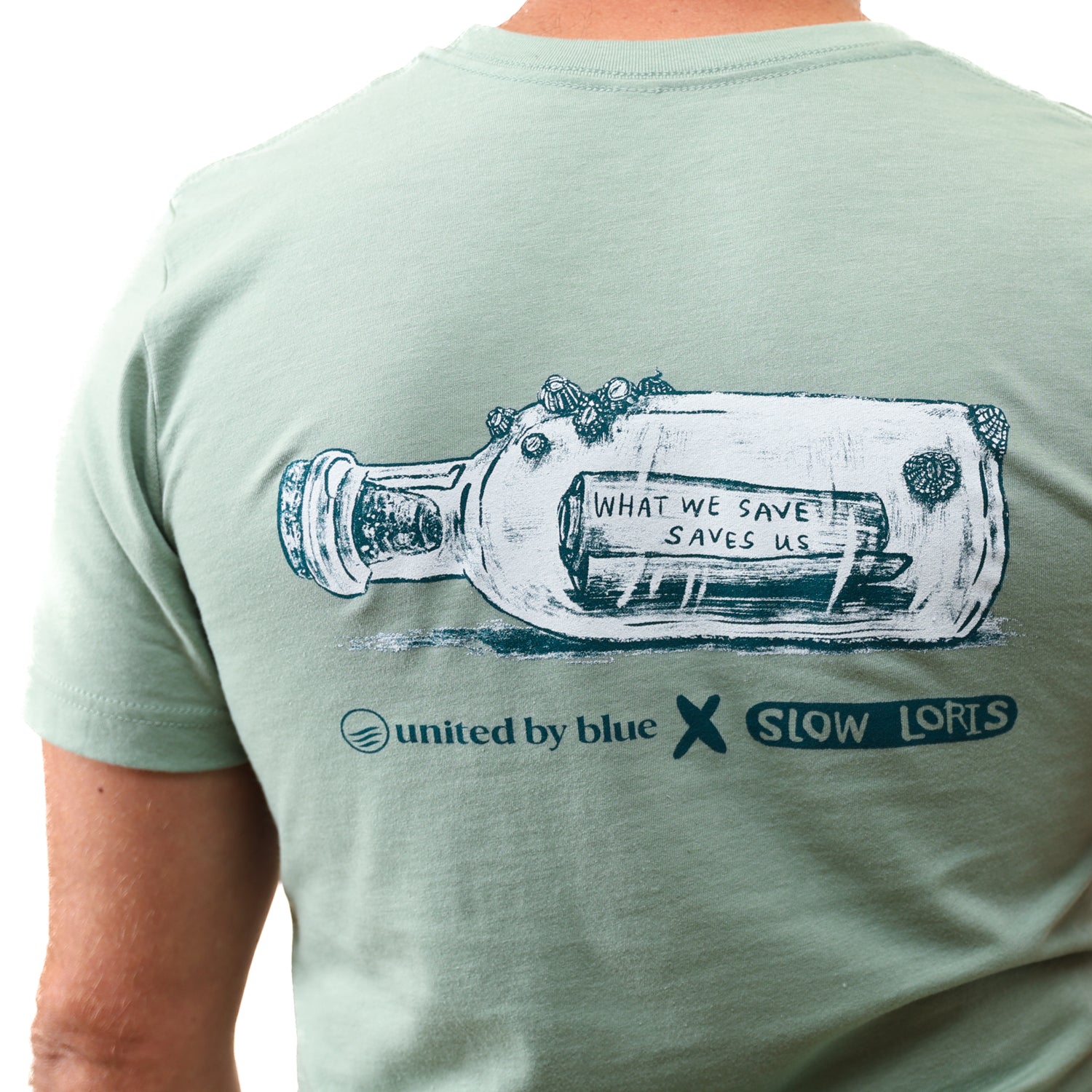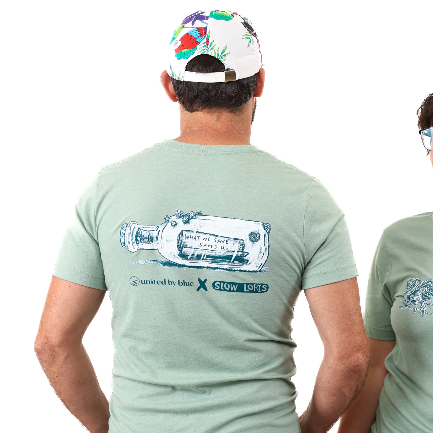 Just like this message in a bottle, the actions we take today echo into the future. Every shirt sold supports *real cleanup efforts, turning these words into action for our oceans.