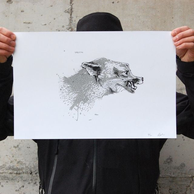 Fox image is approx. 9" tall x 11" wide, centered in the middle of the paper. Edition of 50.