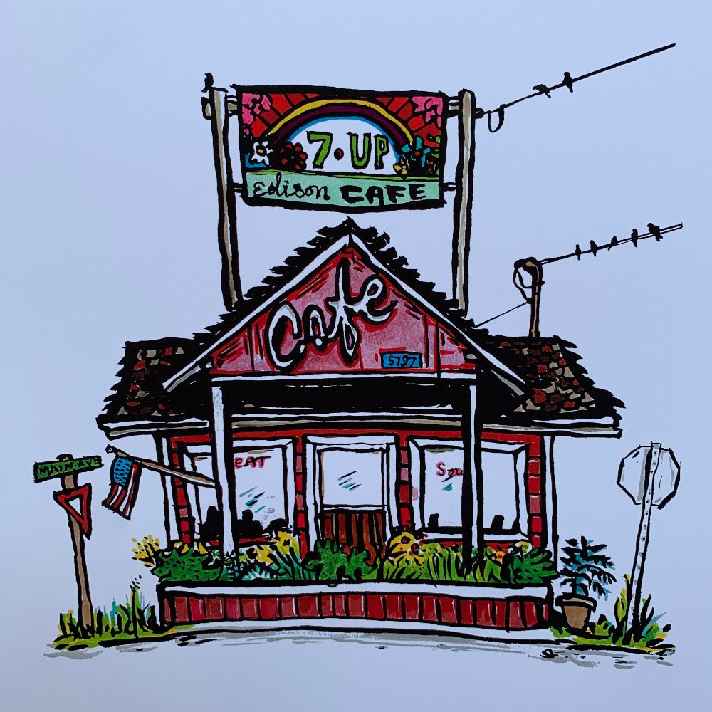 Original Ink painting turn print of the Old Edison Cafe in Edison Washington.
