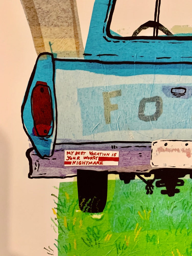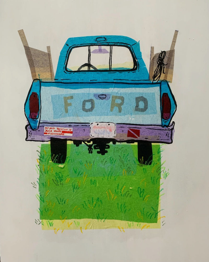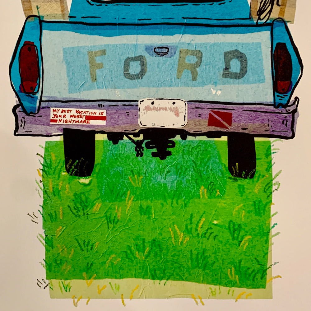 Old Ford Truck on Guemes Island - Print of an original ink & tissue (mixed media) painting.