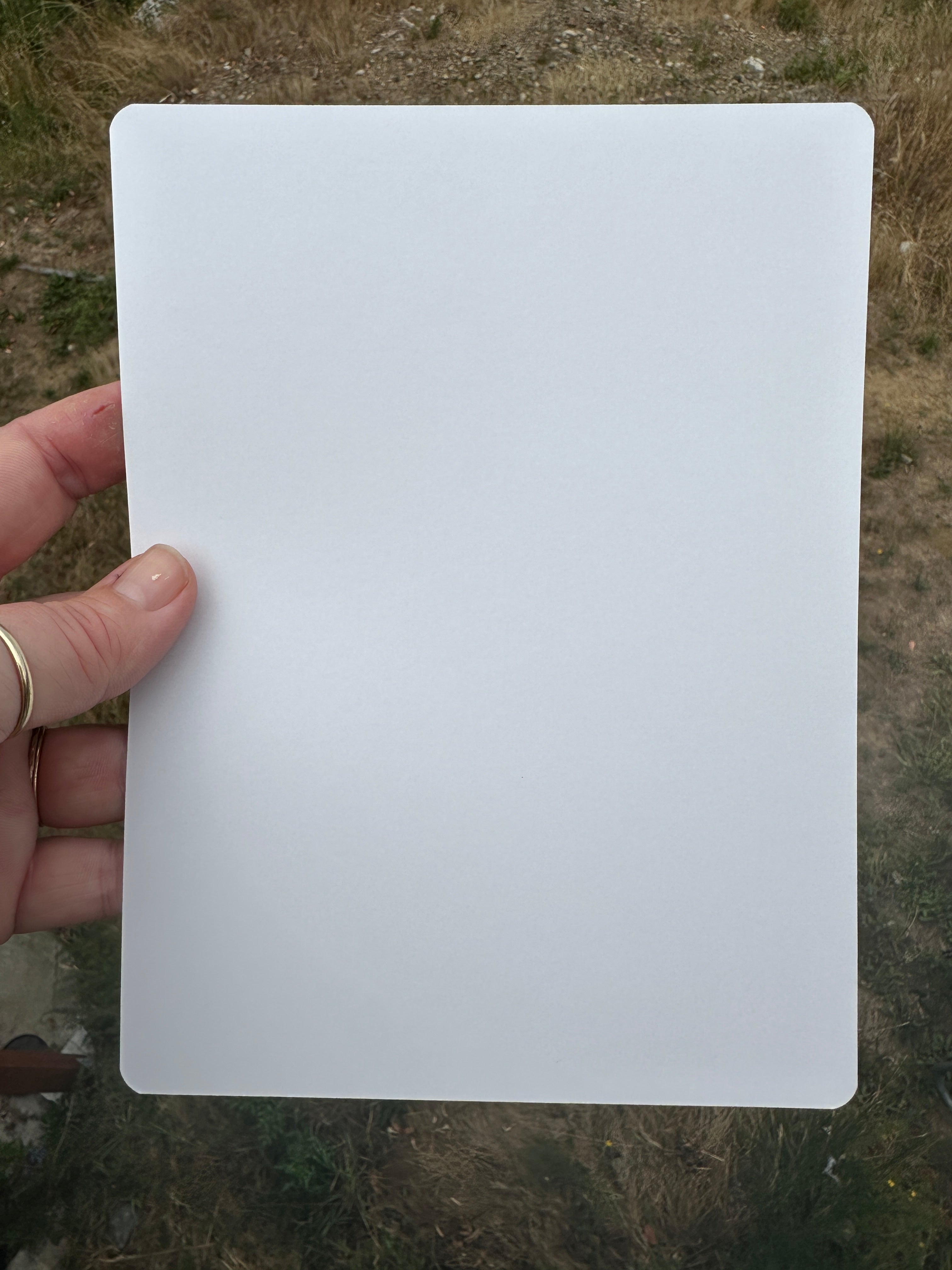 Colorful matte print on 6 X 8”, rounded corner, card stock.