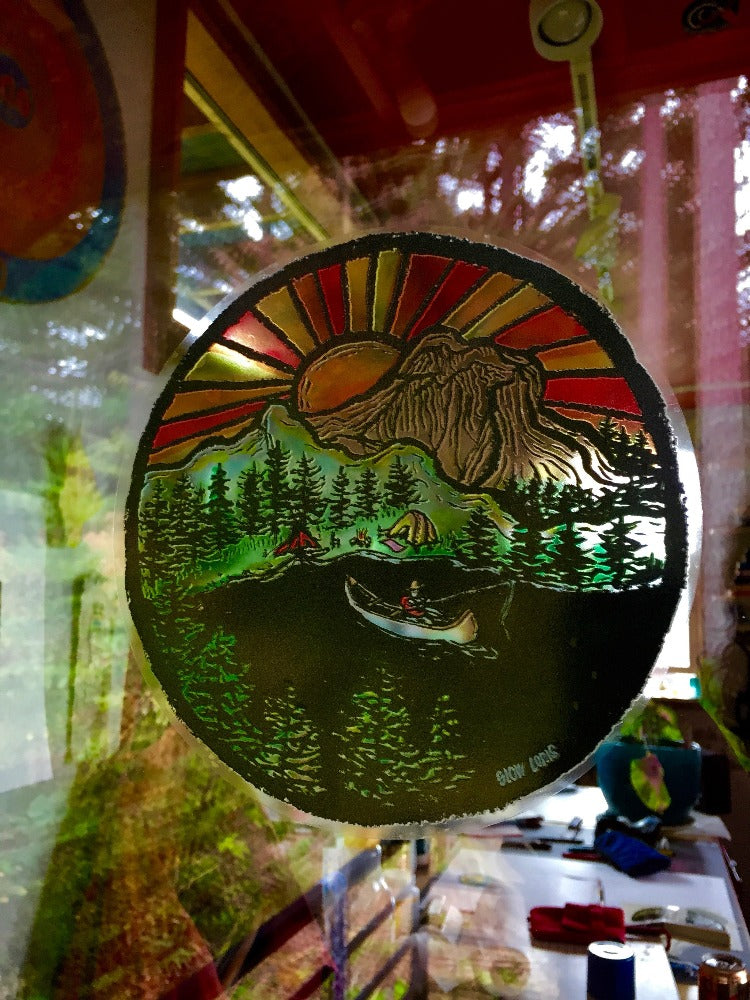 These 7" decals are perfect for a car window or something that light shines through, as various colors on clear vinyl create a stained glass effect.