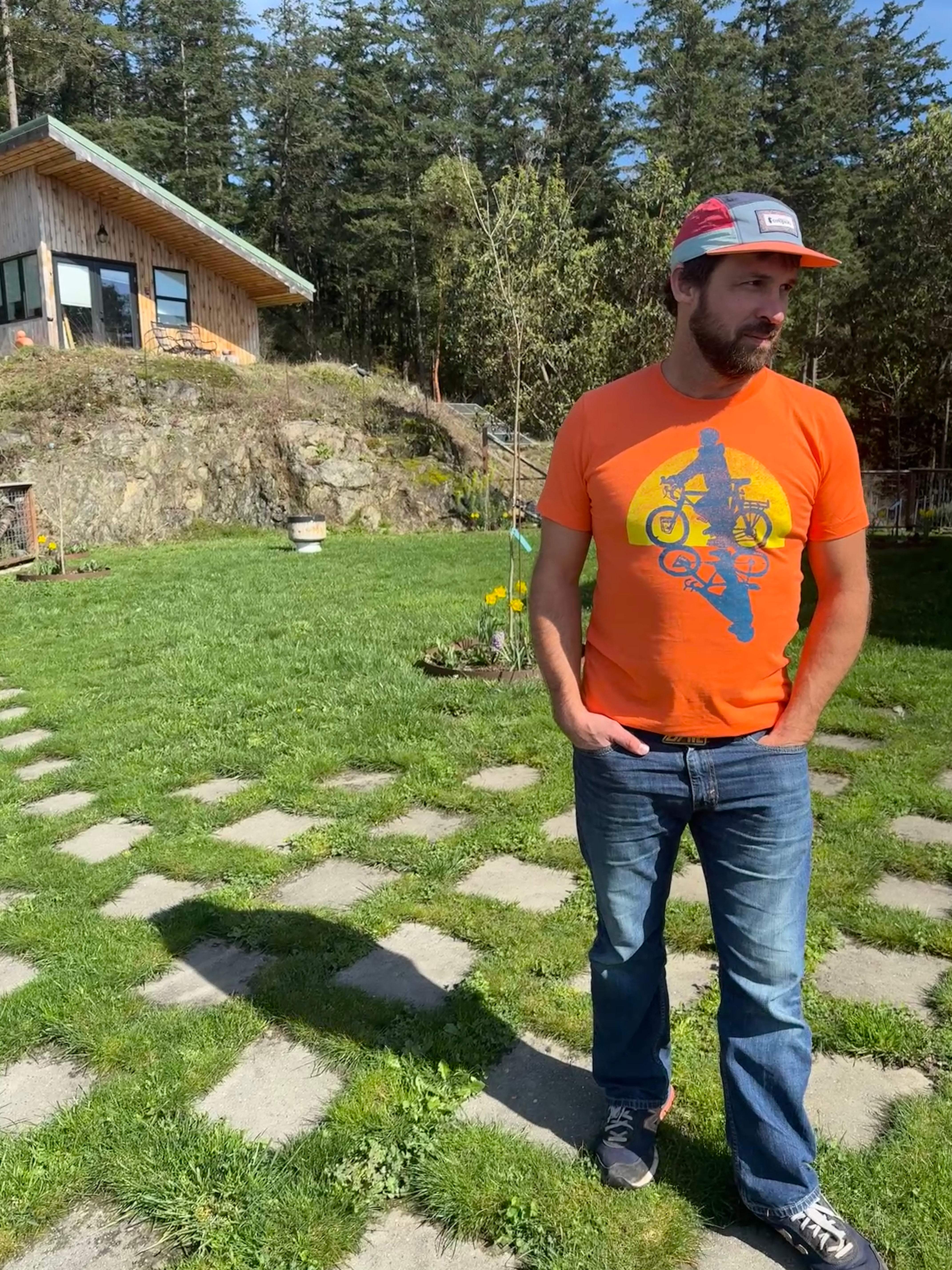 Silhouetted against the setting sun, a bicycle and rider cast deep shadows on the ground.